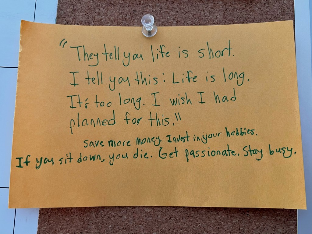 “They tell you life is short. I tell you this: Life is long. It’s too long. I wish I had planned for this.”